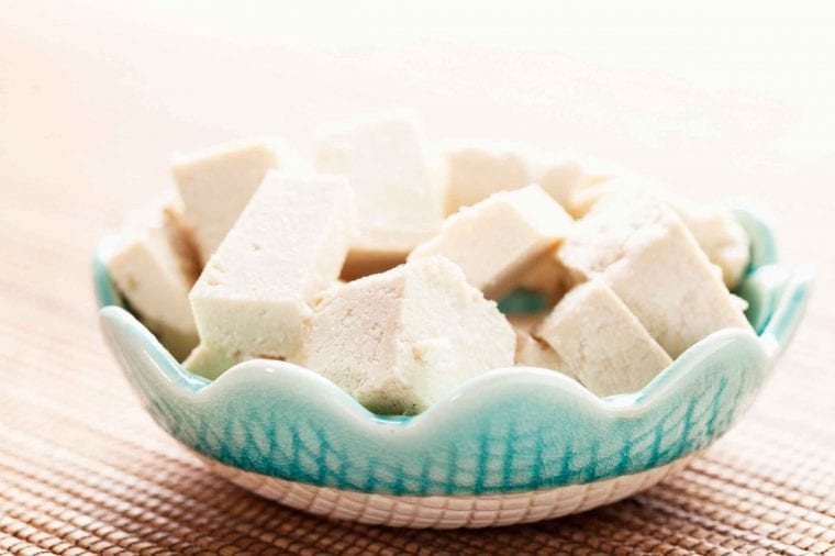 If you need a vegan recipe but still like eggs, tofu will give you the texture you’re looking for. Drain extra firm tofu and pat it dry, then crumble it up a bit with a spatula so it looks like scrambled eggs before you season it. Sauté whatever veggies you normally like in an omelet—try red peppers, onions, and kale— then add the tofu, and cook until your scramble is slightly browned.