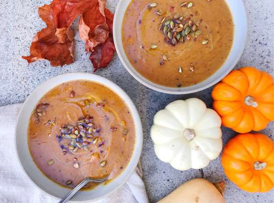 Warm up with this seriously nutritious fall soup. “The pop of ginger here adds anti-inflammatory action, as well as tons of flavor,” says Autumn Bates, C.C.N, based in Manhattan Beach, CA. “Plus, including healthy starchy carbs at dinner—like the sweet potato and butternut squash here—helps to decrease cortisol and improve your deep sleep.”
