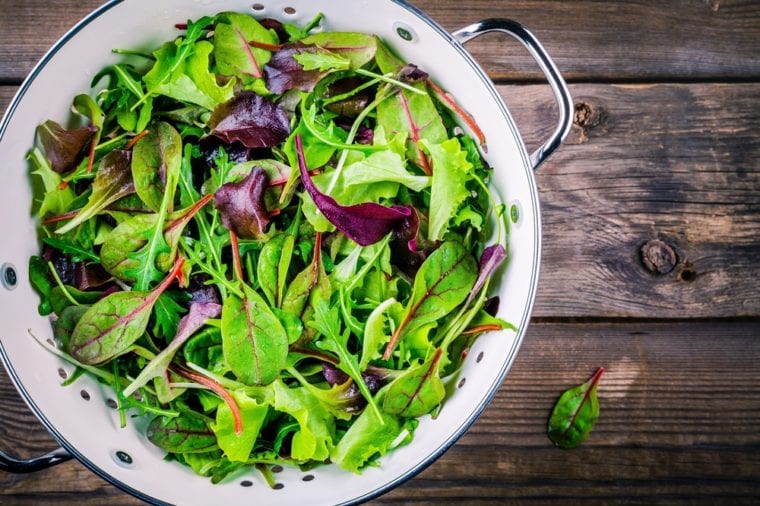 For fresh herbs, she says, “make sure the leaves are firmly attached to the stem and have no sign of brown or black spots.” Finally, triple-wash your lettuce before consuming. “Don’t just rinse under cold water, ” she says, “but fill a large bowl with cold water, tear the leaves into the bowl, submerge and swirl with your hands for a minute or two, then lift the leaves into a strainer and dump the water.” Repeat twice more, then wipe or spin dry.