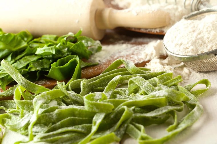 Don’t let the green hue fool you. The actual amount of spinach in green pasta and tortillas is trivial compared with what you would get if you added your own spinach leaves to your pasta dish or wrap. Eat whole grain wraps or pasta, then add actual spinach leaves to get the greens’ ample amounts of B vitamins, fiber, iron, and calcium.