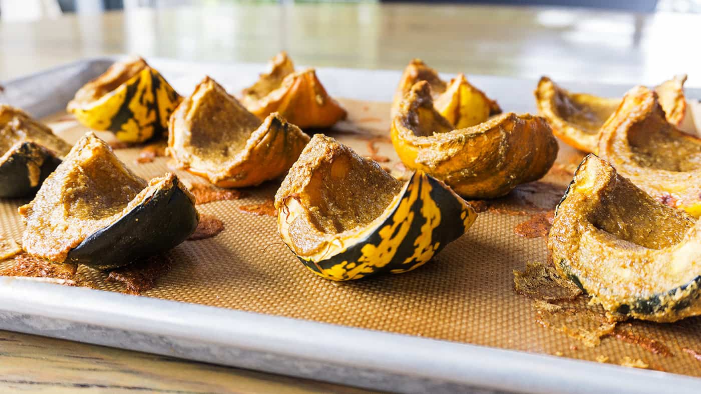 That’s a high carb count, but they do have 9 grams of fiber to balance it out. A minute in the microwave on high will make each squash easier to cut in half. Put a couple of tablespoons of orange juice in each half, and bake them cut-side up for 30-45 minutes. A little cinnamon and nutmeg will finish it off. Or use them as entree cups, and stuff them with goodies like chicken, mushrooms, and kale.