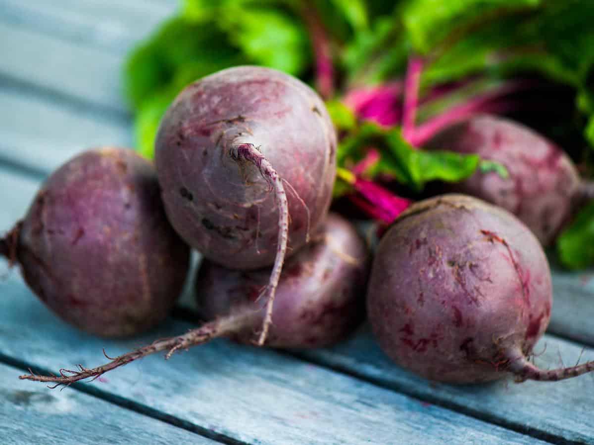 If you want to cut your cook time, don’t cook your beets whole as many recipes suggest. Peel them and slice them into eight pieces. Lay them flat on a cookie sheet and bake at 425 degrees for around 20 minutes. Once they’re done, you can throw them into a salad with some arugula, pecans, and low-fat feta cheese.