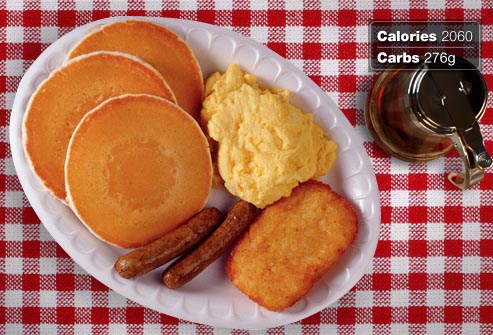 No food is off-limits with diabetes, but this brunch will blow your carb and calorie budget in a hurry. Experts suggest that meals for people with diabetes should have 45-75 grams of carbohydrates, depending on individual goals. Your body weight, activity, and medications all matter. This meal packs enough carbs for four to five meals.