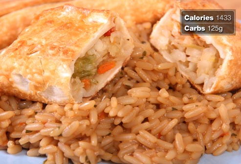 Deep-fried egg rolls, fried rice, and a main dish dripping in oily sauce make this meal an unhealthy choice. The total sodium in this type of meal is more than most people with diabetes should have over 3 days. Beware the MSG (monosodium glutamate), a seasoning that sends the sodium content soaring.