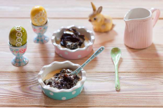A traditional Easter dessert of Finland, mämmi is made of water, rye flour and powdered malted rye. It is seasoned with salt, dried-powdered Seville orange zest and dark molasses. Mämmi is eaten with milk or cream, often cold, and also as a spread with bread.