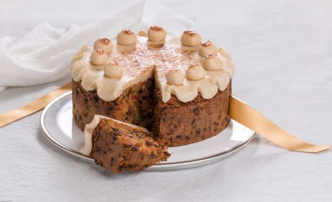 This cake, made with dried fruits and spices, is eaten throughout the U.K. during Lent. It contains a layer of toasted marzipan on top and is decorated with marzipan balls, symbolizing Christ’s disciples.