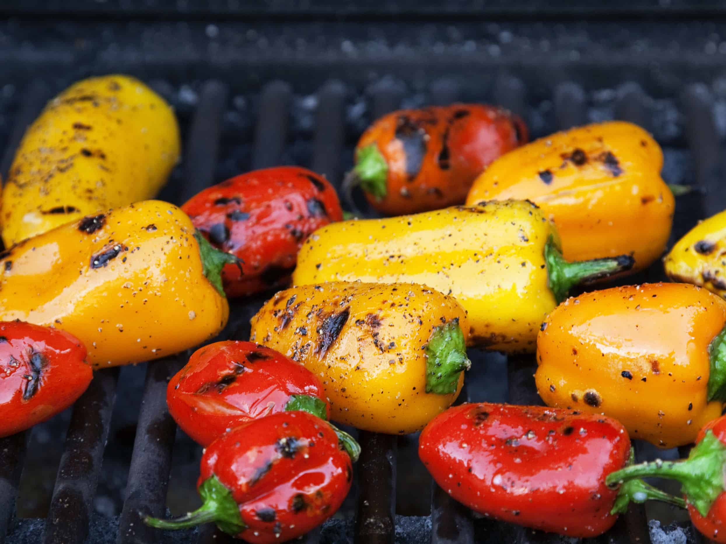 Many vegetables can be grilled whole quite easily. Here are a few popular choices: Corn: Grill unshucked corn for about 30 minutes, until the husk is blackened. Peppers: “Roast” peppers over the grill in a snap. Place clean, whole peppers over the grill and cook until the skins have blackened and crisped, the interior is meltingly tender, about 10 minutes. (Grill a bunch of peppers at once, peel them when cool, and you can freeze them and use them for months!) Romaine lettuce: Strange, but true: you can grill lettuce! Grill for about five minutes, until wilted and charred.