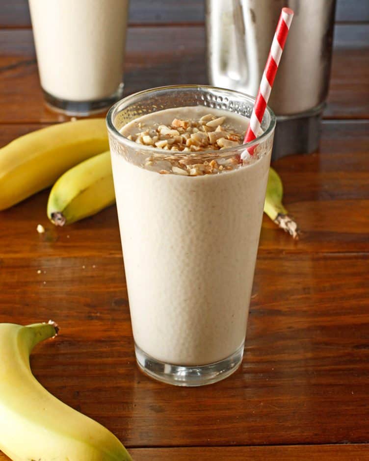 This is the perfect on-the-go snack any time. All you have to do is to blend frozen banana, soy milk, honey, peanut butter, Greek yogurt and some ice cubes. If this is your morning snack, you better keep it in a tight-sealing container. Also, for an afternoon fresh boost, you can prepare it the night before and freeze. In the morning, you should remove it and enjoy it after lunch.