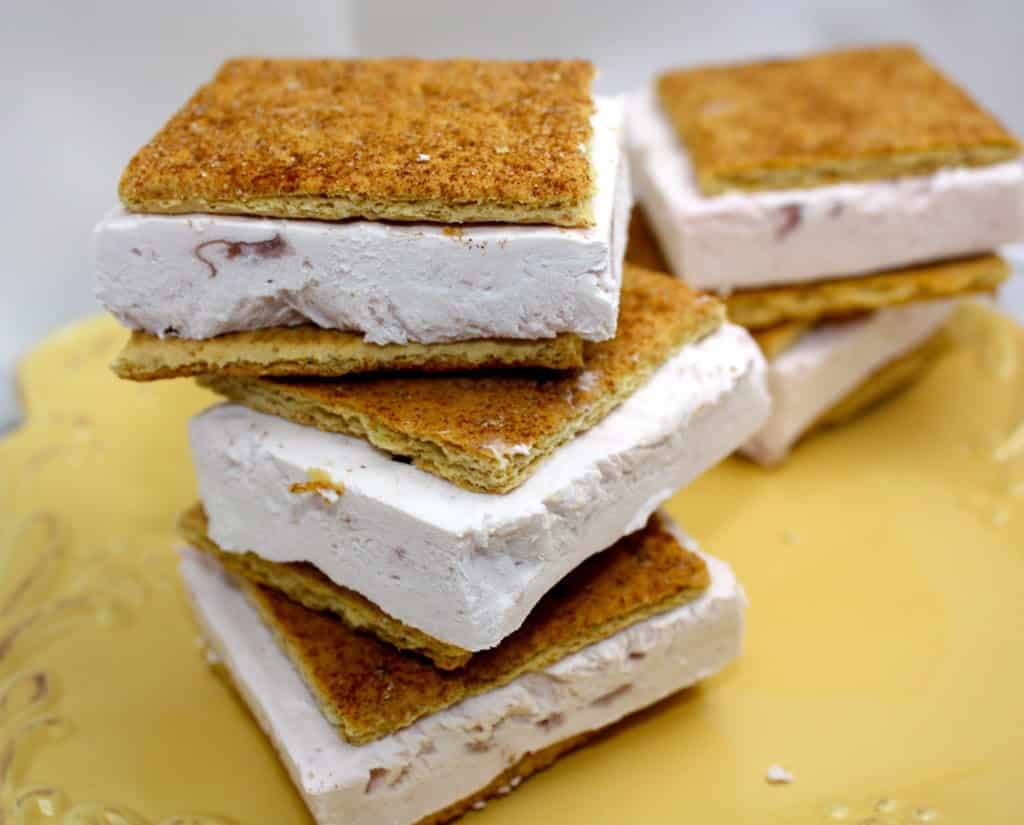 Use two graham cracker squares as the “bread,” and fill with 1/4 cup of light or sugar-free whipped topping. Wrap in plastic wrap and freeze. This “ice cream sandwich” will cost you around 80 calories and 10 carbs.