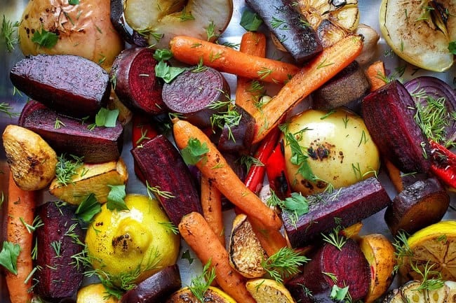 Roasting brings out the natural sweetness of vegetables. This dish can add a punch of flavor — plus a dose of vitamins and fiber — to any meal. Serve it as a side, or add the veggies to a pasta or grain dish. You’ll do your body good. Research shows that people who eat at least 5 servings of veggies a day live longer than those who don’t.