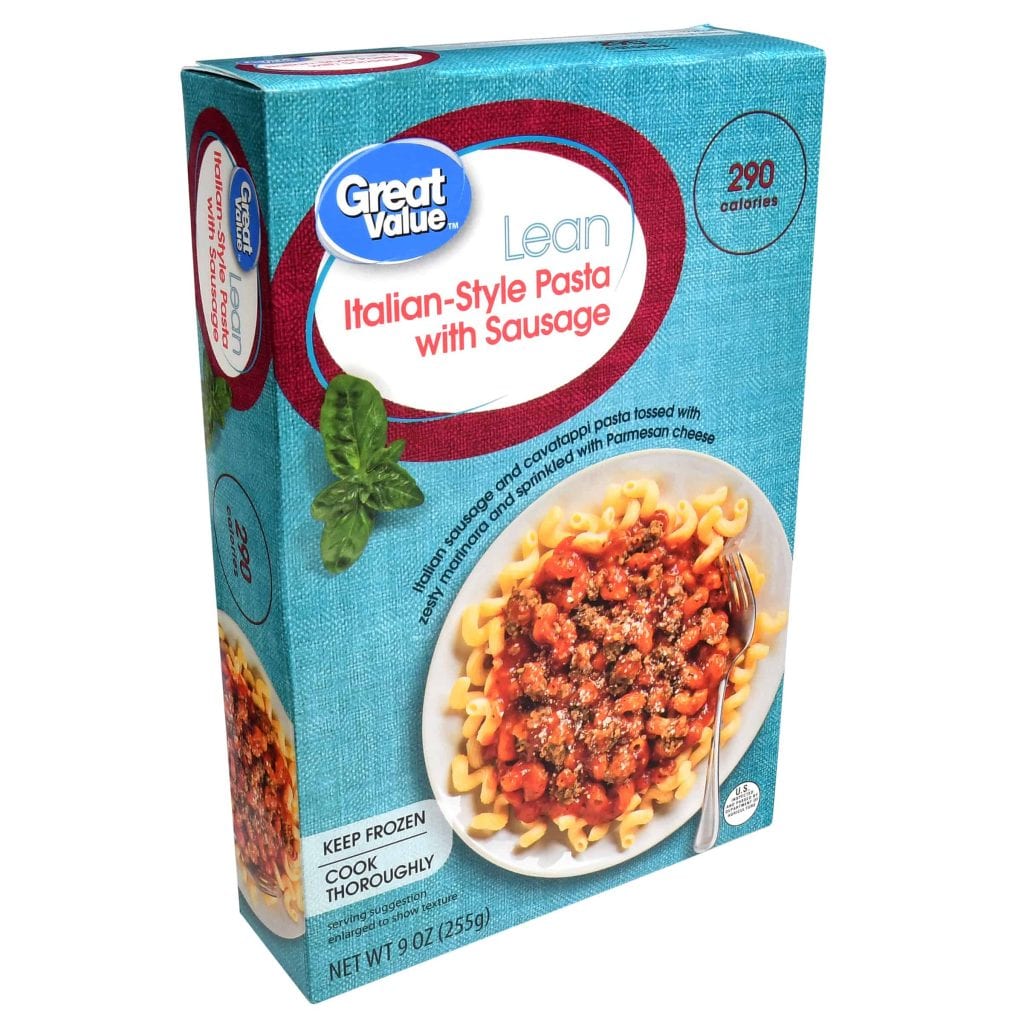 If you’re looking for a microwavable lunch option, the Great Value Lean line could be a solution—but you do need to read the labels. This pasta dish was one of the safest options we found in our frozen aisle—290 calories, 470 mg of sodium, and around 20 percent of your daily recommended intake of carbs.