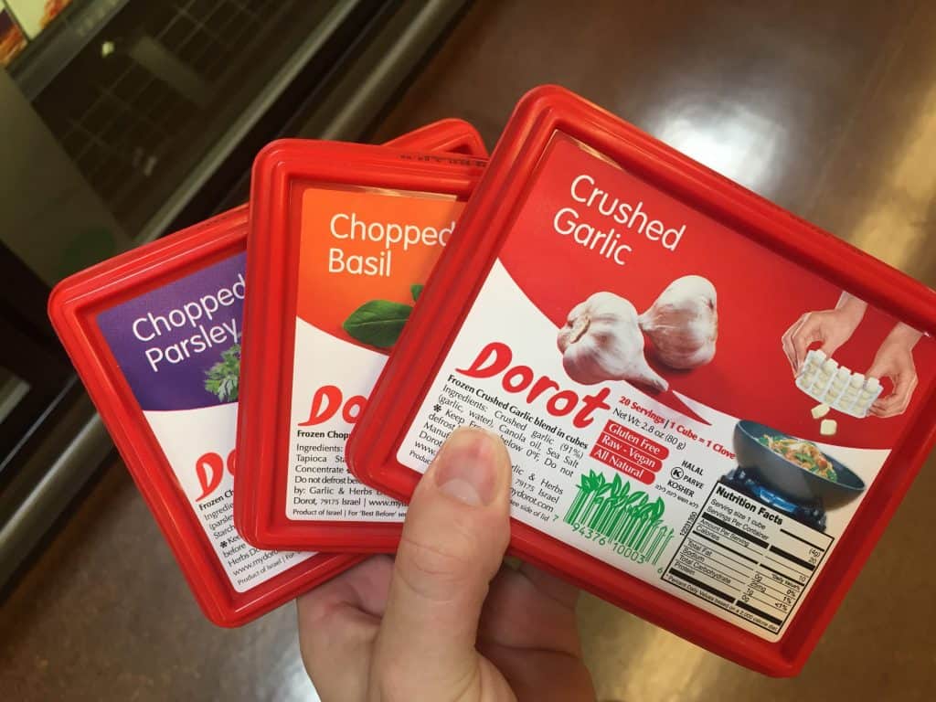 One of Los-Angeles based chef Beth Saltz, RD, MPH, of Nutrition in the Kitchen favorite things to buy is Dorot frozen garlic squares. “They’re perfect for busy nights when you don’t have time to peel and mince garlic,” she says. “Throw them into a sauté pan with hot oil to melt them; then, add steamed veggies and some salt and pepper, and you’ve got a healthy side dish.”